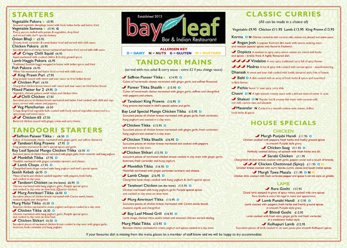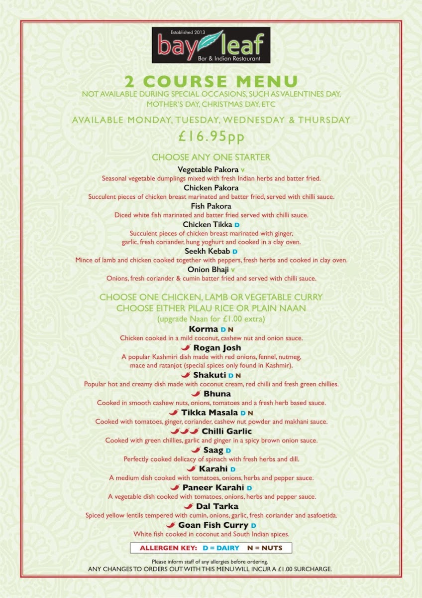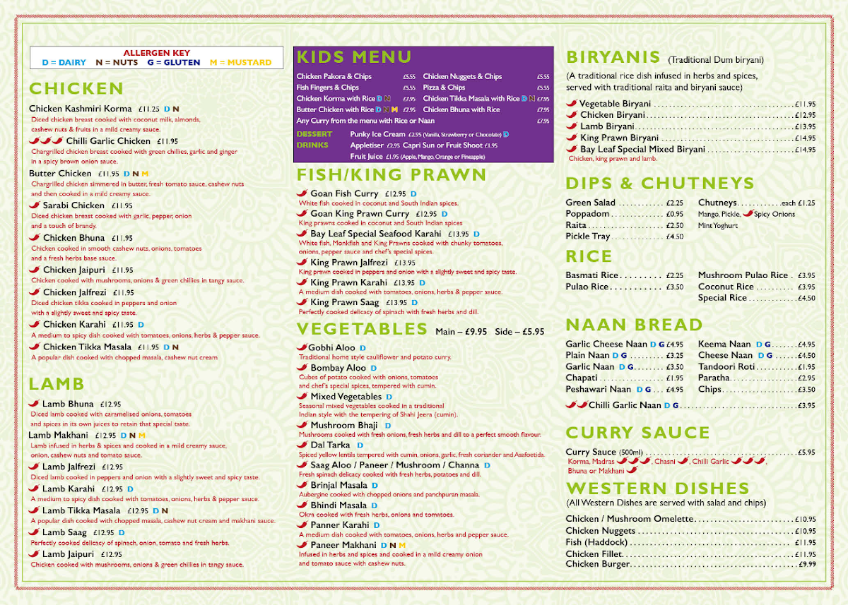 Korma, Madras, Chasni, Chilli Garlic, Bhuna or Makhani